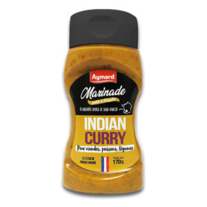 Prête à l’emploi, la marinade Indian Curry Aymard est proposée en pot de 170g refermable.