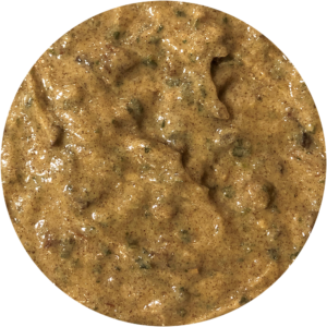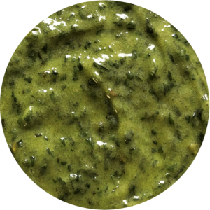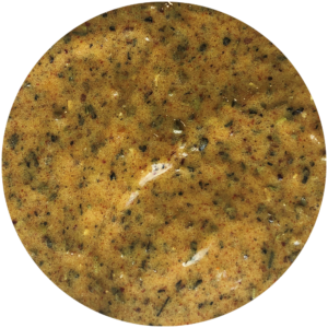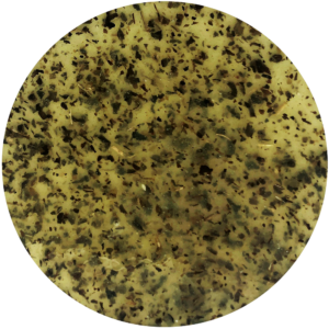 Enrobage de couleur vert avec quelques marquants de thym et de romarin.